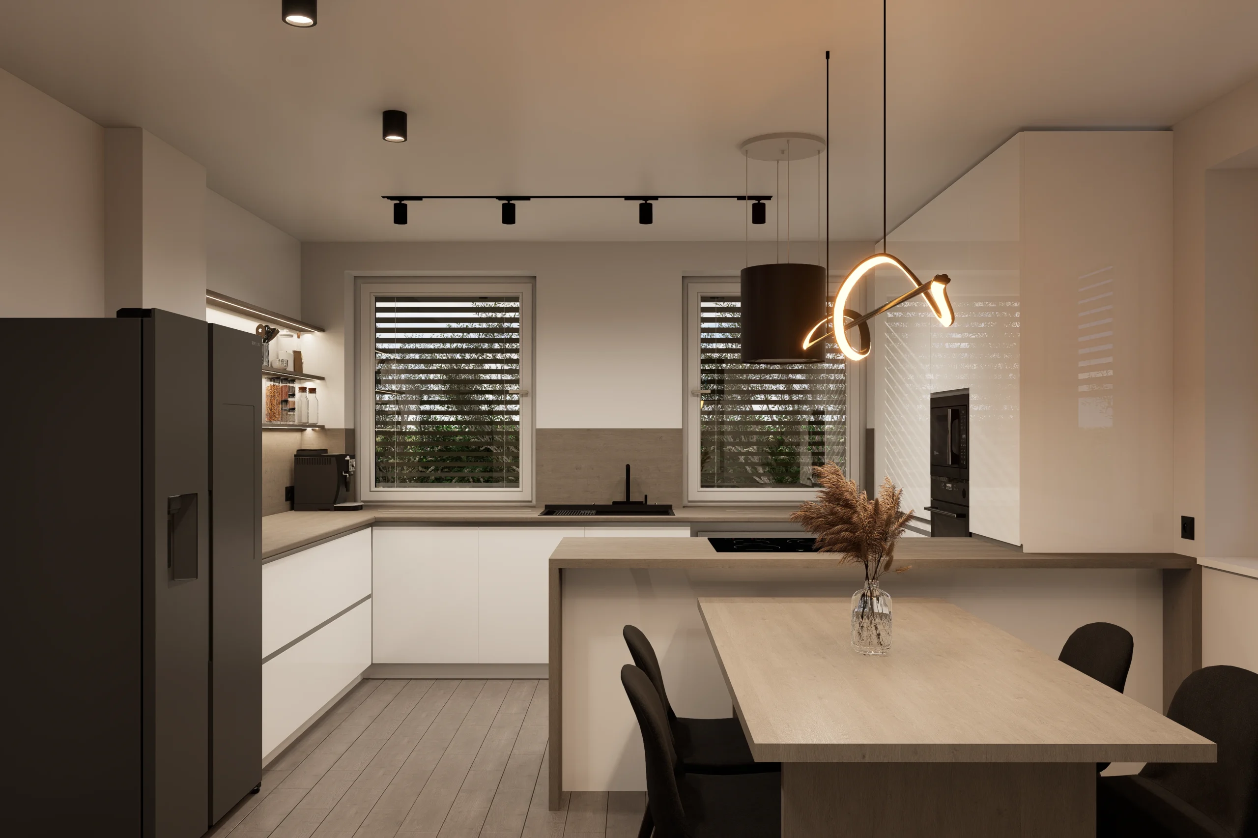 Každý prvok v návrhu má svoje presné miesto a funkciu, čím spoločne prispievajú k celistvému výrazu priestorovej harmónie. Výsledkom je moderný domov, ktorý nepúta pozornosť zbytočnosťami, ale svojou vnútornou integritou a kvalitou spracovania, ktorá zostáva aktuálna aj po rokoch.